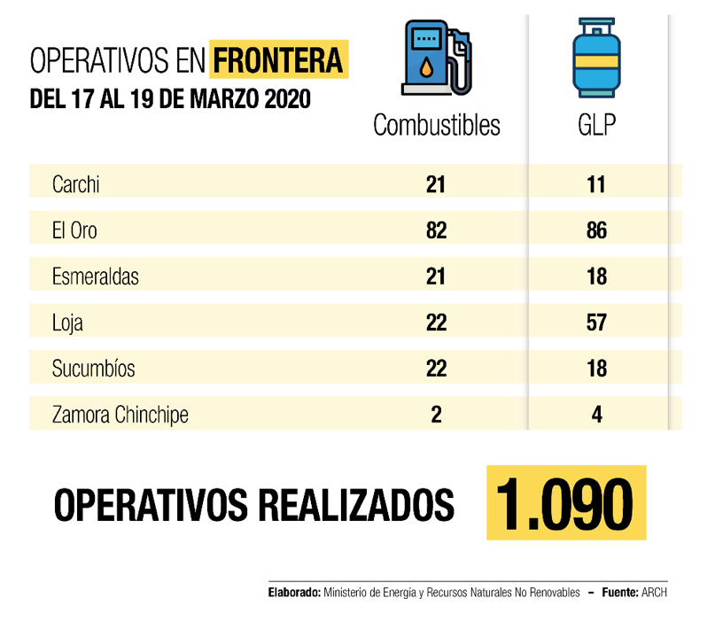 Así, durante la presente semana, la entidad hidrocarburífera de control ha ejecutado 1.090 inspecciones y operativos en terminales de productos limpios; estaciones de servicio; plantas de envasado de GLP en cilindros; centros de acopio y depósitos de distribución en todo el país, en cumplimiento a las medidas sanitarias vigentes en el Ecuador.