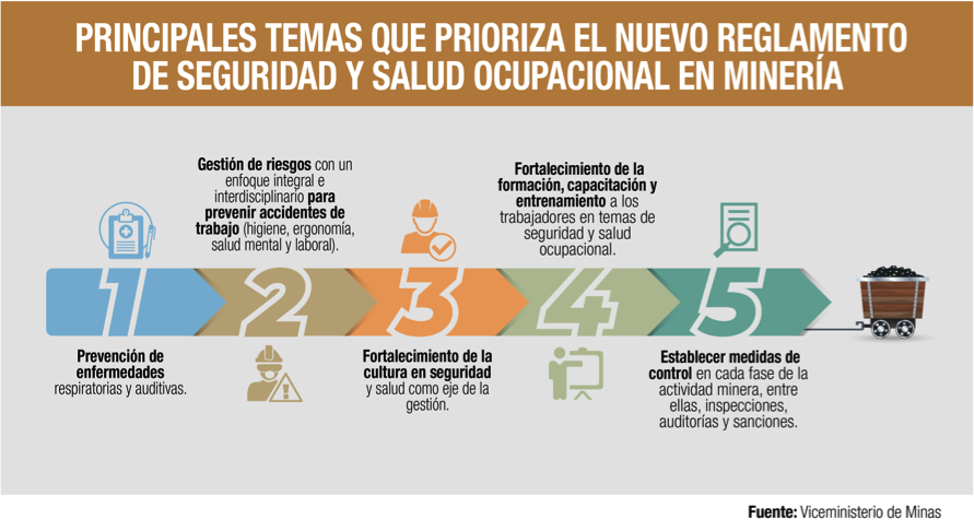Sobre aquello, el Viceministro de Minas, Fernando L. Benalcázar enfatizó en que la propuesta de reglamento, ha sido un trabajo efectivo con aporte público – privado que permitirá modernizar, actualizar y mejorar los estándares de seguridad y salud en la minería. “Mediante sistemas de administración, entrenamiento y capacitación se permitirá minimizar los incidentes y accidentes en la industria que actualmente genera empleo para 33 mil personas. No hay proyecto, por más importante que sea económicamente, que justifique la muerte o lesión de un trabajador”, señaló.