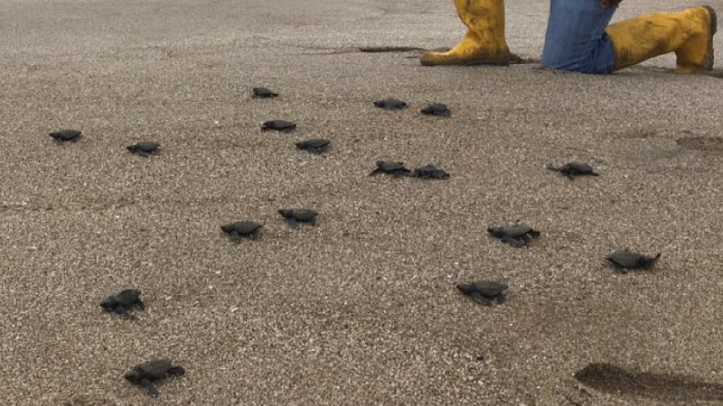 El periodo de eclosión dura de 45 a 50 días, durante este tiempo es posible observar el nacimiento de los neonatos y sus primeros pasos hacia el mar.