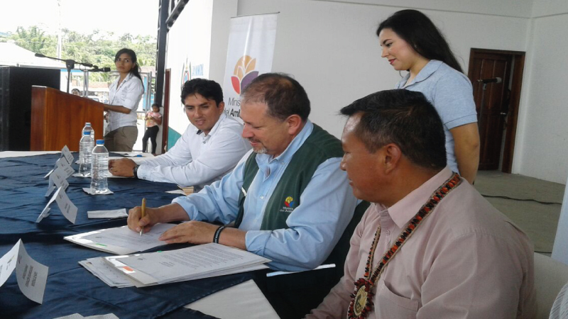 Por su parte, Tarsicio Granizo, Ministro del Ambiente, reconoció que esta entrega es apoyo para garantizar la soberanía de los pueblos ancestrales, “sin descuidar su compromiso por ser parte del cuidado de nuestros recursos naturales. Esto permitirá que ustedes sean parte del Estado y puedan, además, obtener beneficios del uso sostenible y sustentable de esta tierra”.