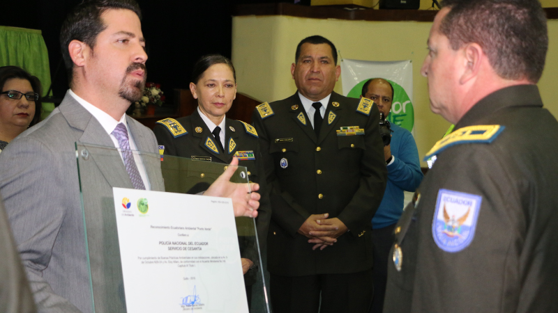 El Ministro del Ambiente fue el encargado de entregar los 12 reconocimientos a las Dependencias Policiales. Los certificados Punto Verde acreditan los esfuerzos realizados por las empresas por fomentar el uso de los bienes y servicios de manera sostenible; incentivando a sus colaboradores a adoptar buenas prácticas ambientales.