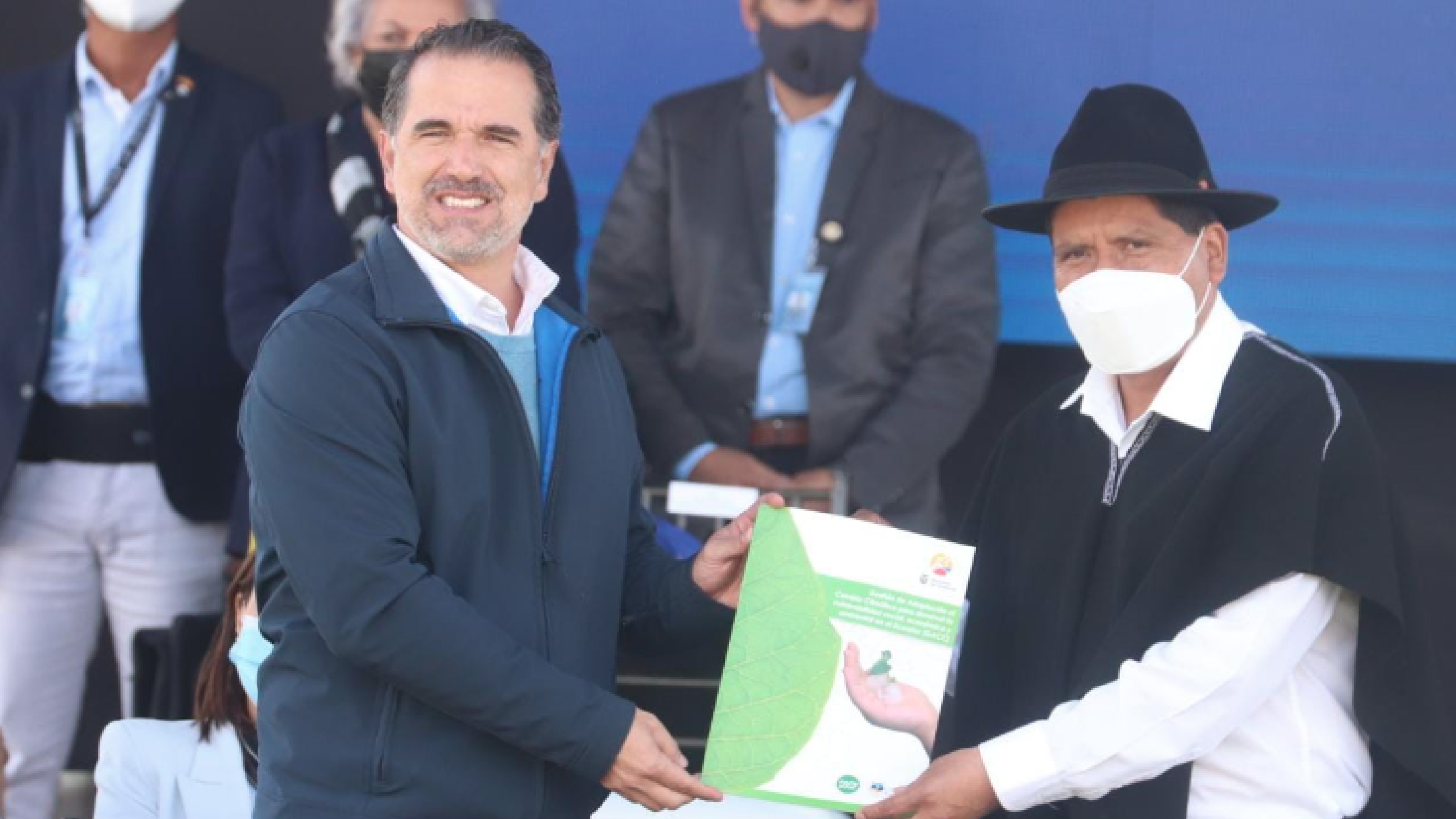 La parroquia Huachi Grande del cantón Ambato fue el escenario donde el Presidente de la República, Guillermo Lasso, junto al Ministro del Ambiente, Agua y Transición Ecológica, Gustavo Manrique, entregó la viabilidad técnica del Proyecto Embalse Quebrada Chiquicahua.