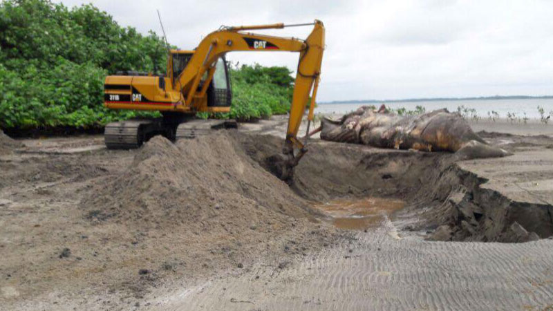 El Ministerio del Ambiente como principal rector ambiental procedió a enterrar al ejemplar de aproximadamente 9.30 metros de largo, hembra adulta, en una zona alejada, no turística, para evitar afecciones a la salud pública y al entorno.