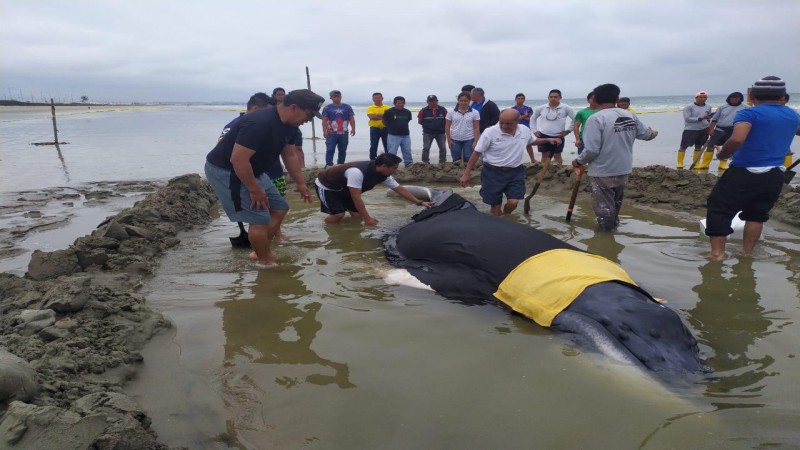 Ballenato varado en la playa de la comuna San Pablo retornó a su hábitat natural