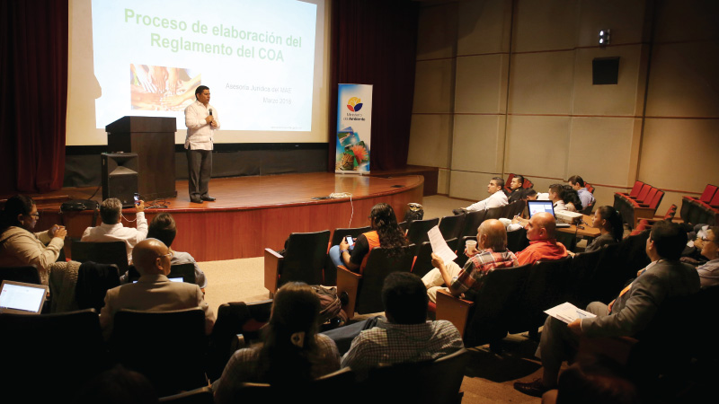 El Ministerio del Ambiente, con el apoyo de Organizaciones No Gubernamentales y la Cooperación Internacional llevó a cabo un proceso altamente participativo, a través de varios talleres en las ciudades de Esmeraldas, Cuenca, Zamora, Tena, Riobamba, Quito y Guayaquil, que permitieron recabar insumos y asegurar tanto la contribución ciudadana como la coordinación interinstitucional en el desarrollo del reglamento.