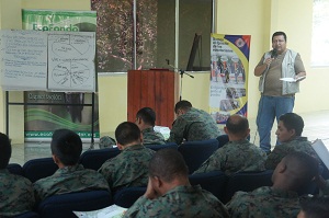 Uno de los temas abordados por los técnicos del MAE durante el último día del curso, estuvo relacionado con los procedimientos y el manejo en territorio que el personal militar debe tomar en cuenta al momento de realizar controles de tráfico forestal y de vida silvestre.