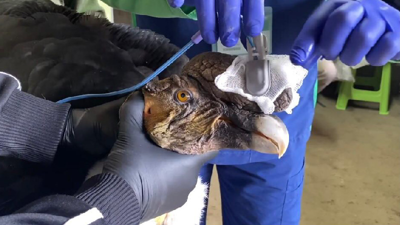 Según el veterinario de la Fundación Cóndor Andino y docente de la Universidad UTE, Andrés Ortega, “en la primera revisión el espécimen macho adulto presentó un cuadro clínico de hipotermia, se tomó muestras de sangre para hacer cultivos y se le colocó una terapia de fluidos para rehidratar al animal.”