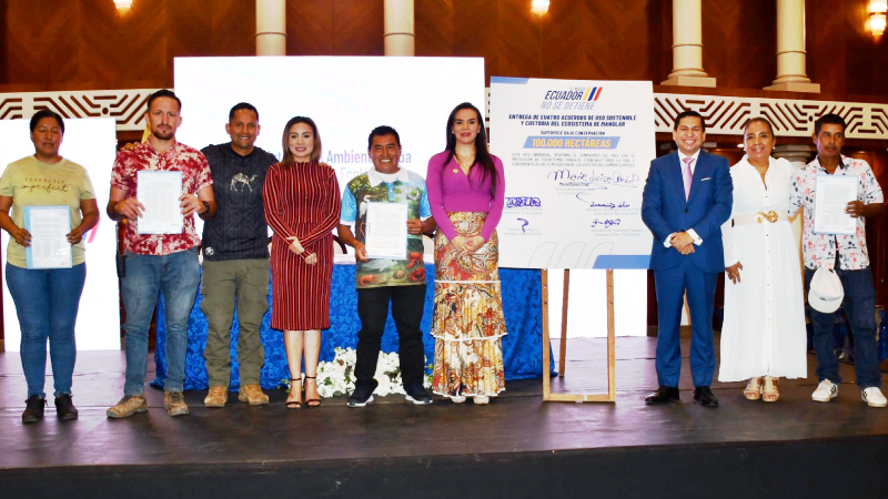 En el marco de la conmemoración por el Día Internacional de la Defensa del Ecosistema Manglar, la ministra del Ambiente, Agua y Transición Ecológica María Luisa Cruz, entregó cuatro nuevos Acuerdos de Uso Sostenible y Custodia del Ecosistema de Manglar (AUSCEM) a organizaciones de pesca artesanal de la provincia de El Oro. Entrega que le permite al Ecuador alcanzar 100.000 hectáreas de manglar bajo conservación comunitaria, consolidando así el compromiso del país con la gestión sostenible de estos ecosistemas frágiles.