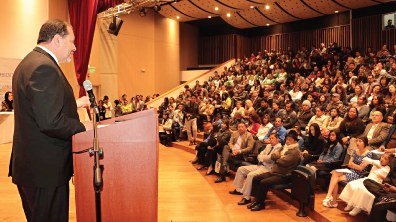 Con más de 300 asistentes, el auditorio de la Plataforma Gubernamental Financiera fue el escenario para la presentación de la Estrategia Nacional de Educación Ambiental (ENEA) desarrollada por el Ministerio del Ambiente (MAE), en el marco de la Intervención Emblemática “Reverdecer Ecuador. Este acto contó con la presencia de Rocío González de Moreno, presidenta del Comité Interinstitucional “Plan Toda Una Vida”; el ministro del Ambiente, Tarsicio Granizo; y diferentes representantes del gobierno y la sociedad civil.