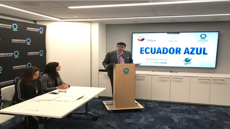 Este viernes 29 de marzo, se suscribió el Acuerdo de Donación entre Conservación Internacional y el Fondo de Inversión Ambiental Sostenible para destinar 6 millones de dólares a la sostenibilidad financiera de cinco áreas marinas y costeras protegidas de Ecuador continental. La firma del acuerdo se realizó en Arlington, Estados Unidos, con la presencia de Marcelo Mata Guerrero, ministro de Ambiente de Ecuador; Ana Albán, directora Ejecutiva del Fondo de Inversión Ambiental Sostenible; y Daniela Raik, vicepresidenta de la División de las Américas de Conservación Internacional.