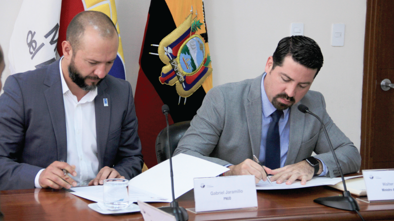 Por su parte, Gabriel Jaramillo (PNUD), destacó que esta cooperación es un hito muy importante, ya que refleja el trabajo arduo de muchos años, en conjunto con actores locales, nacionales, Carteras de Estado, y algunas agencias del Sistema de Naciones Unidas. Agradeció al ministro García, por su esfuerzo, su compromiso junto al de la ciudadanía, y los pueblos, nacionalidades y comunidades y de todos quienes apoyan un esquema de Desarrollo Sostenible para el Ecuador. La firma de este convenio abre la puerta a la posibilidad de que el Ecuador pueda recibir más recursos en el futuro para continuar en esta línea.