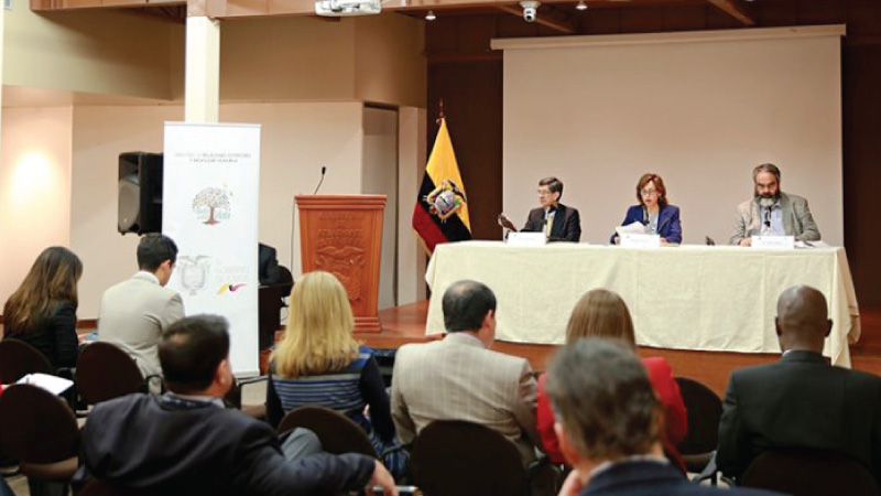 Los Ministerios de Relaciones Exteriores y Movilidad Humana; Ambiente y, de Industrias y Productividad, junto con el Cuerpo Diplomático de la Región de América Latina y El Caribe acreditados en el país, participaron del evento informativo sobre la Trigésima Reunión de las Partes (MOP30) del Protocolo de Montreal, con el objetivo de exhortar a los países a ratificar la Enmienda de Kigali, en miras a la eliminación progresiva de las sustancias agotadoras de la capa de ozono.