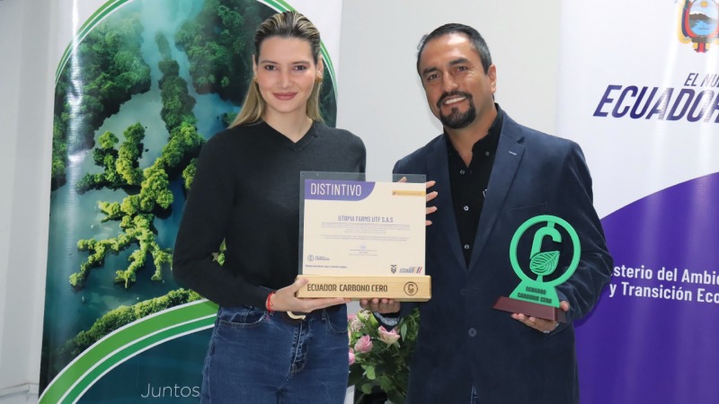 Este 26 de marzo de 2024, en la parroquia de El Quinche, provincia de Pichincha, la ministra del Ambiente, Agua y Transición Ecológica (MAATE), Sade Fritschi entregó el Distintivo Cuantificación Huella de Carbono a la empresa Utopia Farms UTF S.A.S, por haber realizado el inventario de emisiones de gases de efecto invernadero, superando todos los requisitos y estándares exigidos por el Programa Ecuador Carbono Cero (PECC).