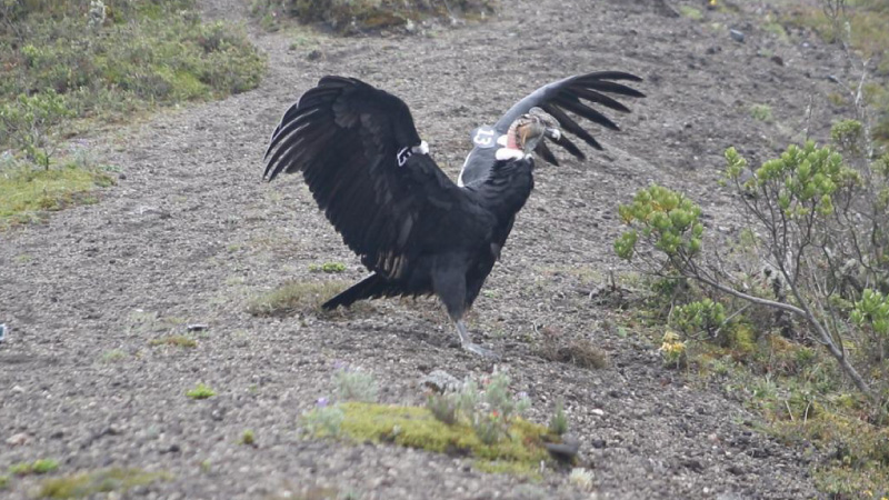 El espécimen adulto alzó su vuelo en la cara sur del Parque Nacional Cotopaxi en el sitio conocido como Ticantilín portando un rastreador satelital y bandas alares que permitirá conocer sobre sus rutas, lugares de alimentación y dormideros.
