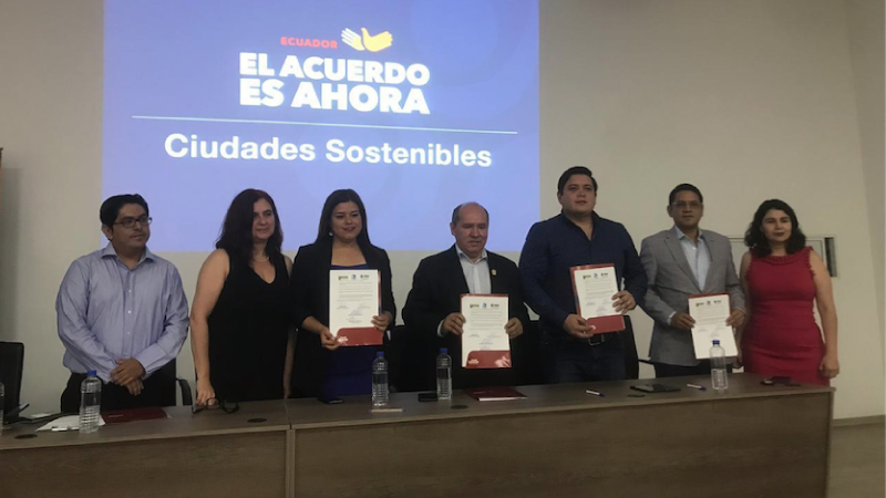 En el marco de la presentación del Acuerdo Nacional sobre Ciudades Sostenibles, que tuvo lugar en Salinas, provincia de Santa Elena, se realizó la firma del Acta de compromisos entre los Gobiernos Autónomos Descentralizados de Salinas, La Libertad y Santa Elena para la implementación de la Mancomunidad de Santa Elena con el objetivo de establecer mecanismos conjuntos de gestión integral de desechos sólidos.