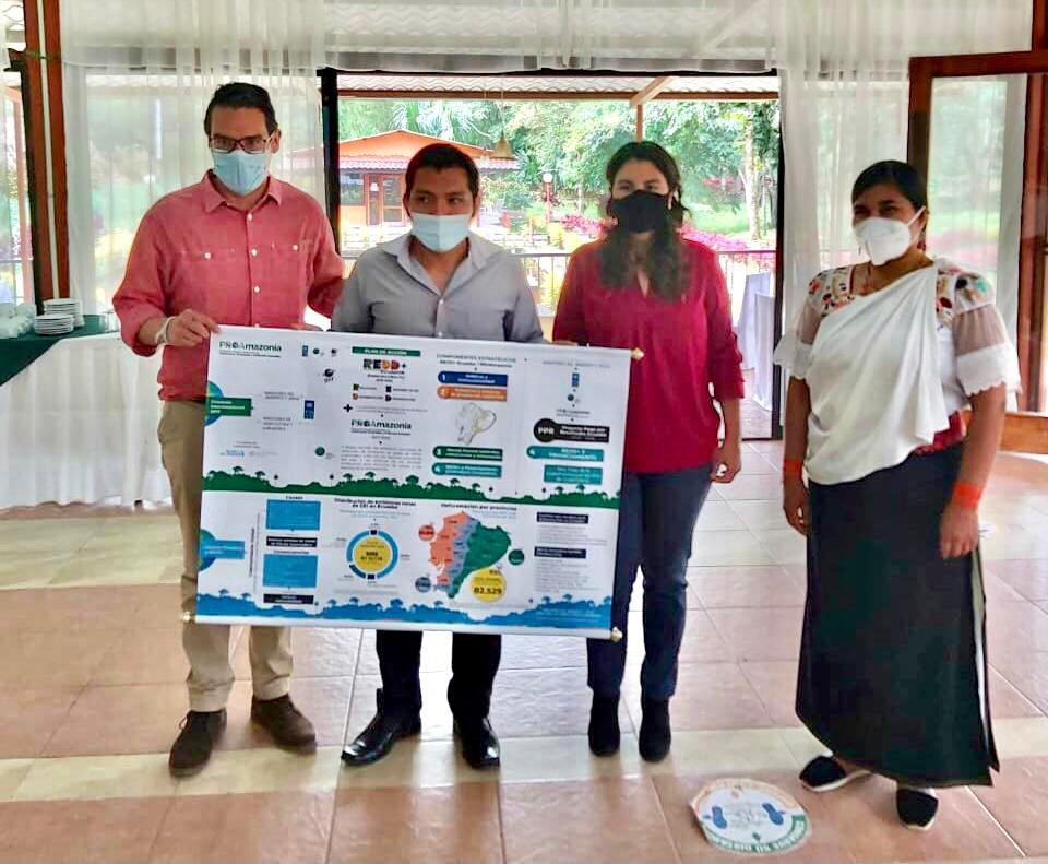 Esta cooperación vigente hasta octubre de 2021, contempla la puesta en marcha de una hoja de ruta de la mano de la CONFENIAE, organización territorial que representa a los once pueblos y nacionalidades indígenas de la Amazonía ecuatoriana, las mismas que están ubicadas en las áreas de intervención del Programa Integral Amazónico de Conservación de Bosques y Producción Sostenible – PROAmazonía, programa ejecutado por el MAAE, MAG con el apoyo del PNUD.