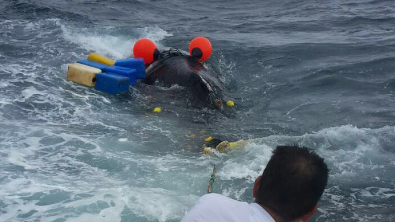 Guardaparques rescatan a ballena jorobada enredada en artes de pesca