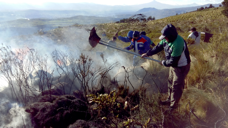 Personal del Parque Nacional Llanganates controlaron un incendio forestal en el sector de Curiquingue, en el cantón Píllaro, provincia de Tungurahua; 8 guardaparques actuaron en la zona del flagelo en conjunto con miembros del Cuerpo de Bomberos de la localidad.