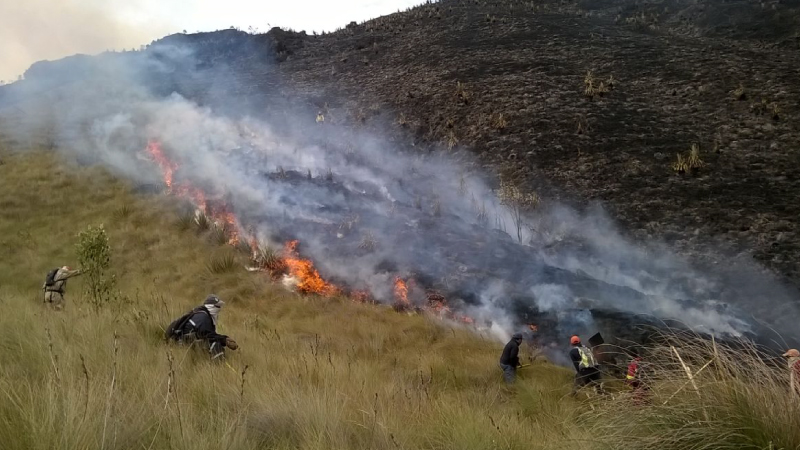 MAE trabaja para controlar y liquidar un incendio forestal en los sectores de Llaviuco, Sorrocucho y Mazán Alto, ubicados dentro del Parque Nacional Cajas.