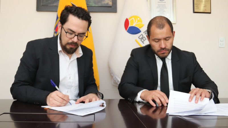 Los ministros del Ambiente, Marcelo Mata Guerrero y, de Producción, Comercio Exterior, Inversiones y Pesca, Pablo Campana, suscribieron una carta de compromiso con Inty Gronneberg, ingeniero científico ibarreño elegido como ‘Inventor del Año 2018 en América Latina’ por la revista MIT Technology Rewiew, con el objetivo desarrollar e implementar la iniciativa de la empresa Ichtion para la recolección de desechos plásticos alojados en los ríos de nuestro país.