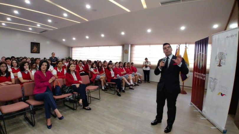 Guayas.- El ministro del Ambiente, Raúl Clemente Ledesma Huerta, participó en un conversatorio con jóvenes de las Unidades Educativas Bilingües Torremar y Delta sobre responsabilidad ambiental con el objetivo de crear conciencia acerca de la importancia de la conservación del ambiente y la protección de la biodiversidad mediante el cuidado y manejo adecuado de los residuos sólidos y la implementación de procesos que aseguren un desarrollo sostenible.