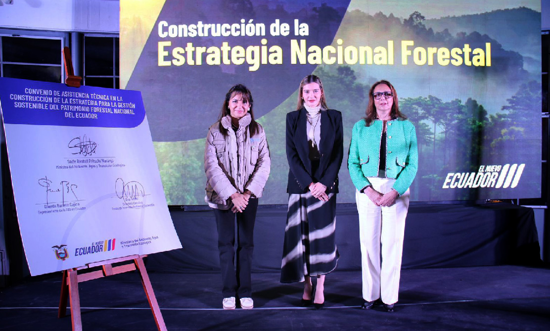 En el Jardín Botánico de Quito, este 27 de marzo de 2024, el Ministerio del Ambiente, Agua y Transición Ecológica (MAATE), presentó el inicio de la construcción de la “Estrategia Nacional Forestal”, una política pública que tiene como objetivo reducir la deforestación, mejorar las condiciones agro-productivas sostenibles, impulsar la conservación y el manejo responsable de los bosques en todo el Ecuador.