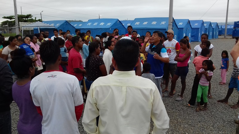 Tras el fuerte movimiento telúrico que sacudió el país el pasado 16 de abril, miles de personas de la población costera de San José de Chamanga recurrieron a los albergues del Ministerio del Ambiente, para buscar ayuda. De un momento a otro, hermanos que hasta aquel trágico momento no se conocían, vivían uno a lado del otro. El ambiente en estos sitios pudo tornarse caótico pero las familias damnificadas decidieron buscar mejores días y organizarse.