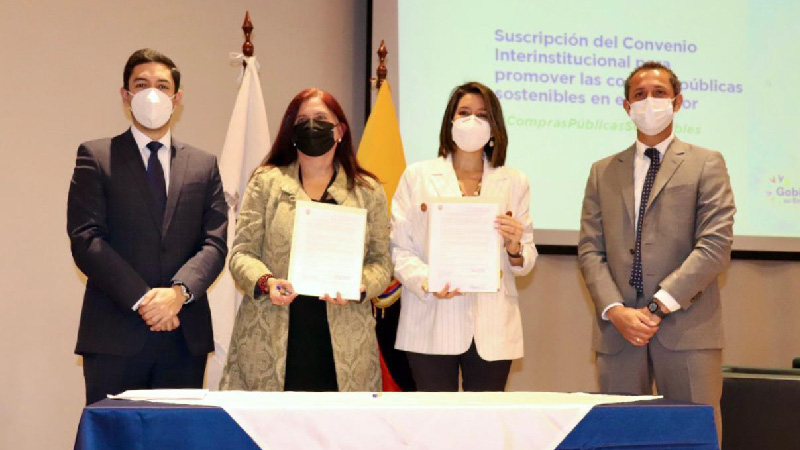 Ecuador.- Con el objetivo de coordinar acciones que permitan generar políticas que promuevan y faciliten la implementación de las compras públicas sostenibles en el país, el Servicio Nacional de Contratación Pública y el Ministerio de Ambiente, Agua y Transición Ecológica suscribieron un convenio interinstitucional, en el Auditorio de la Plataforma Gubernamental Financiera.