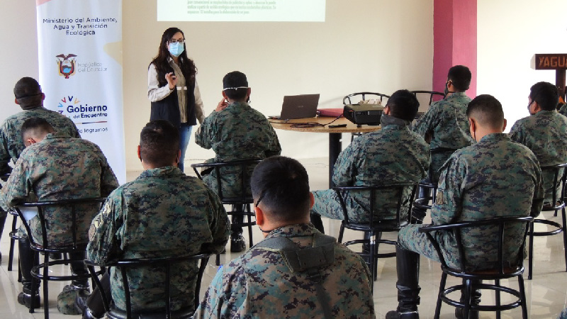 Imbabura. – El Ministerio del Ambiente, Agua y Transición Ecológica, brindó una capacitación de buenas prácticas ambientales enfocadas a 60 militares del Grupo de Caballería Mecanizado Nº 36 Yaguachi de las Fuerzas Armadas del Ecuador, con el fin de conservar nuestro patrimonio natural por medio de soluciones y alternativas de desarrollo sustentable que se pueden implementar en la provincia.