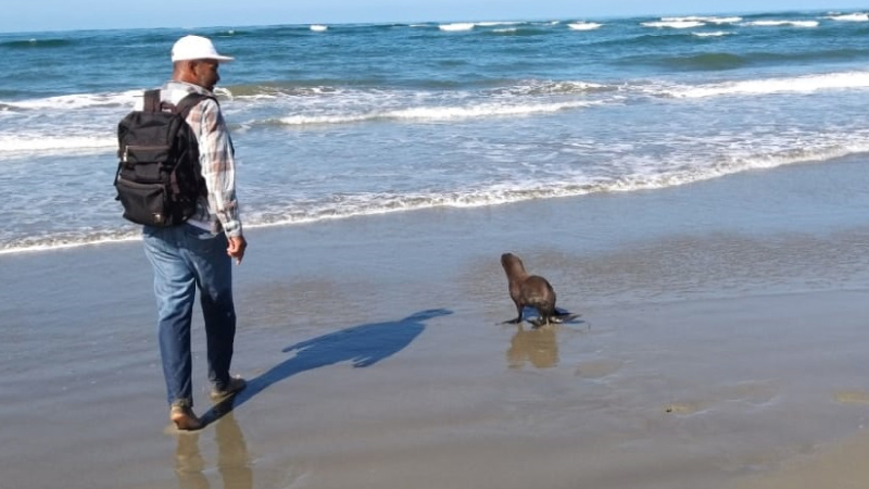 Un lobo marino (Otaria flavescens) hembra juvenil, fue rescatado en el sector Bajo Grande, en la Isla de Muisne, provincia de Esmeraldas, por personal especialista en vida silvestre y guardaparques del Refugio Estuario Río Muisne, luego de reportarse una alerta en redes sociales. El espécimen fue hallado al interior de una finca.