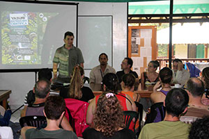 Además de los estudiantes y expertos de más de 20 países de todo el mundo, los guardaparques y técnicos del Parque Nacional Yasuní están participando en los cursos de manejo e investigación enfocados en herpetología (estudio de reptiles y anfibios), mastozoología (estudio de mamíferos) y ornitología (estudio de aves).