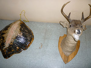 Durante el operativo se logró decomisar tres elementos constitutivos de vida silvestre: un caparazón de tortuga marina, un esqueleto de caballito de mar y una cabeza de venado.