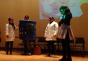 Teatro y música referentes al cuidado de los recursos naturales, fue la antesala para iniciar la conferencia, dirigida por los funcionarios de esta Secretaría de Estado, quienes explicaron las facultades, atribuciones, funciones y acciones que el MAE lleva a cabo en la provincia para precautelar la calidad del ambiente en el Ecuador y su patrimonio natural.