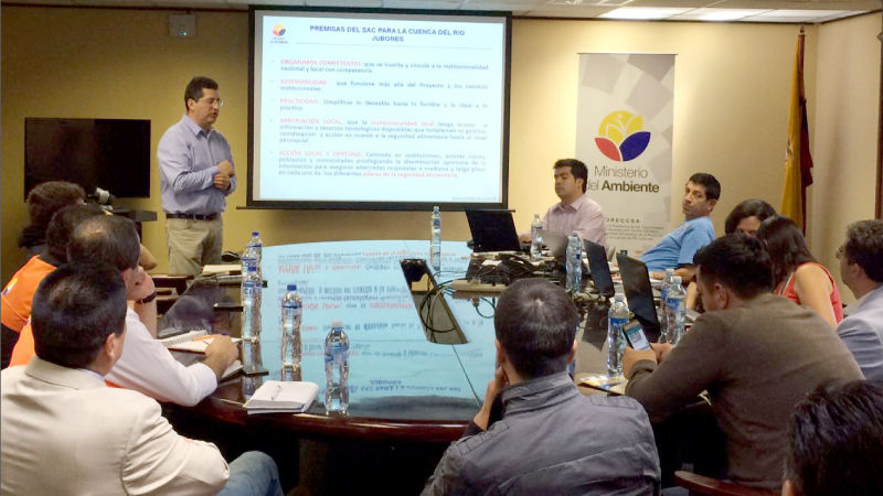 El Ministerio del Ambiente a través de la Subsecretaría de Cambio Climático y su proyecto Fortalecimiento de la Resiliencia de las Comunidades ante los efectos adversos del cambio climático con énfasis en seguridad alimentaria (FORECCSA), en conjunto con el Ministerio de Agricultura, Ganadería, Acuacultura y Pesca (MAGAP) y el Programa Mundial de Alimentos de Naciones Unidas (PMA) realizaron un taller sobre “Validación del Sistema de Alerta Climática para la cuenca del río Jubones y diseño de los protocolos de funcionamiento de la mesa de trabajo en seguridad alimentaria”.