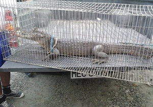 Técnicos del Ministerio del Ambiente en Manabí, rescataron la tarde de ayer en la parroquia Bijagual del cantón Chone, un caimán de anteojos (caimán crocodilus, con una longitud de 1.50 metros y aproximadamente 5 años de vida.