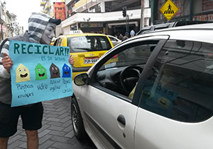 Los semáforos ubicados en las calles de la ciudad fueron aprovechados para concienciar a conductores y peatones que transitaban por el lugar; los jóvenes del proyecto SCC, mediante teatro urbano e intervención de mimos trasmitieron mensajes sobre la gestión adecuada de residuos.