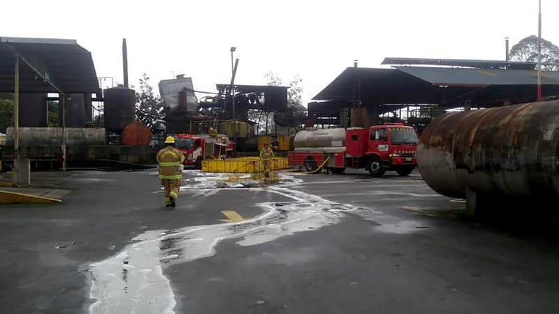 Personal de la Dirección del Ambiente de Santo Domingo de los Tsáchilas acudieron a la Planta RECOLUBE por una denuncia de un incendio producido debido a una falla en el caldero de procesamiento de aceite usado. Esta empresa se ubica en el kilómetro 4 de la vía Quito – Quevedo.