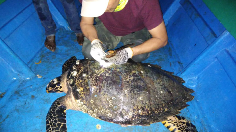 Ministerio realiza el primer marcaje de una tortuga carey hembra en los manglares de la Isla Puná