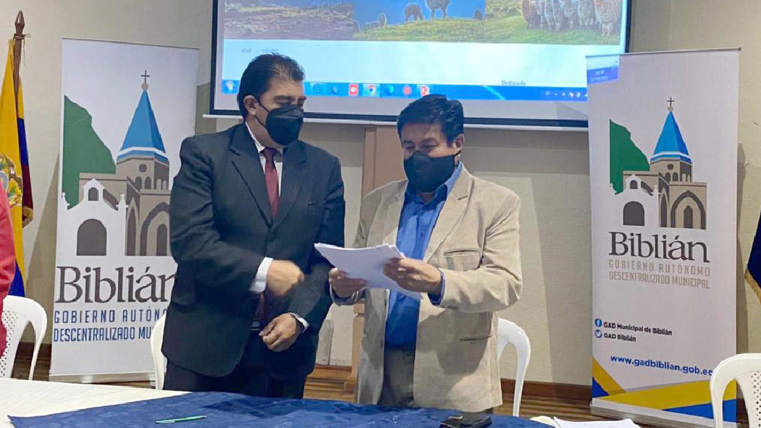 Cañar.- El Ministerio del Ambiente y Agua entregó al alcalde del Gobierno Autónomo Descentralizado Municipal de Biblián, Guillermo Espinoza, la viabilidad técnica para el proyecto: Plan Maestro de Agua Potable, Alcantarillado Sanitario y Pluvial para esta ciudad en sus Etapas II y III, además; dos viabilidades técnicas y términos de referencia de una consultoría de diseño de alcantarillado sanitario para ocho comunidades del cantón.