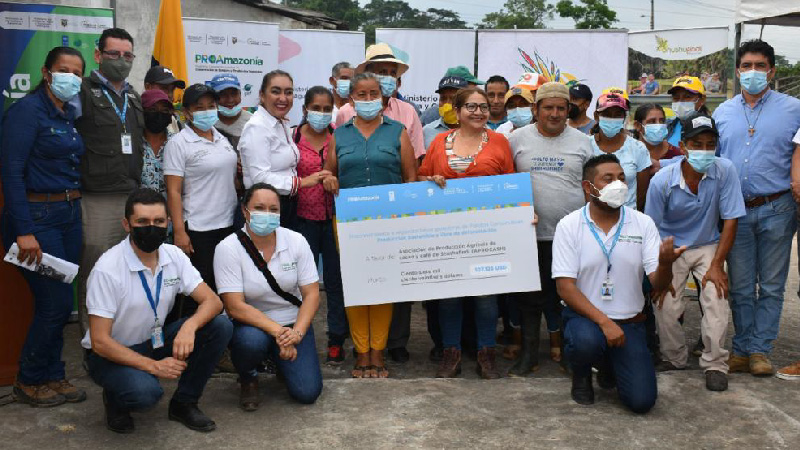 Como parte de las acciones que el Gobierno Nacional realiza para impulsar el desarrollo sostenible del país, se llevó a cabo la entrega de un reconocimiento económico a cuatro asociaciones y una comuna de las provincias de Sucumbíos y Orellana, seleccionadas en la convocatoria de “Financiamiento no reembolsable para productores amazónicos de café, cacao, palma aceitera y ganadería”.