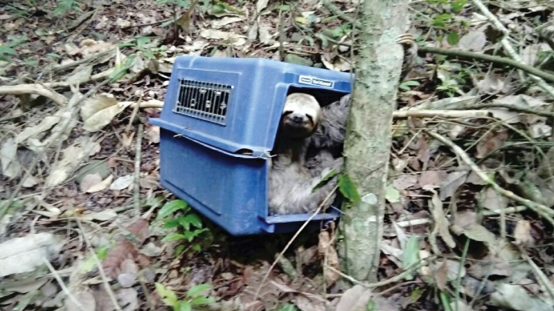 Oso perezoso que fue rescatado en Esmeraldas vuelve a su hábitat natural