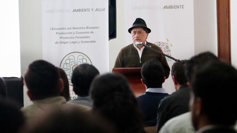 Durante su intervención, el ministro del Ambiente (E) y Secretario de Agua, Humberto Cholango reconoció que este pacto es el resultado de “un esfuerzo por construir políticas públicas sostenibles, para proteger y conservar nuestros bosques, a través de acuerdos que vinculen a todos los sectores sociales de forma participativa en la construcción de un país que respete el Derecho de vivir en un ambiente sano y ecologicamente equilibrado, sin evitar el desarrollo de nuestros ciudadanos”.