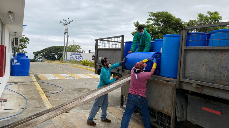 - Gestiones del Ministerio del Ambiente y Agua, y el apoyo de UNICEF, posibilitaron la donación de 907 kilogramos de cloro gas y 6.000 kilogramos de policloruro de aluminio a la Empresa Pública Municipal de Agua Potable y Alcantarilla de Pedernales.