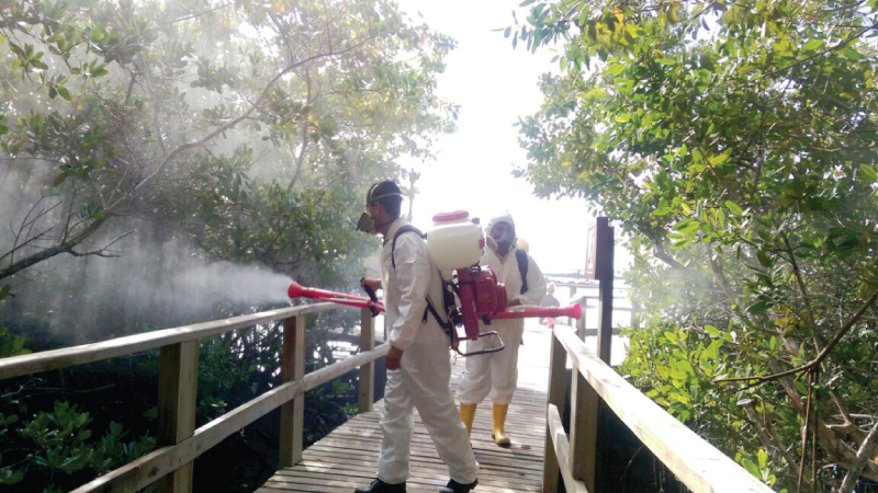“En Santa Cruz se intervino en cinco hectáreas de la zona costera, mientras que en Isabela, luego de los análisis, se proyecta fumigar alrededor de cincuenta hectáreas, siendo los manglares de la zona urbana los más afectados”, mencionó Danny Rueda, director de Ecosistemas de la DPNG.
