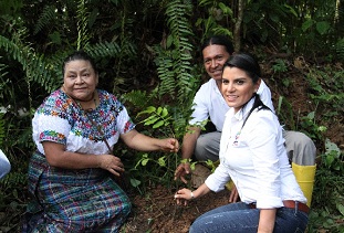 Al finalizar el recorrido y rueda de prensa, la premio nobel de la paz realizó la plantación simbólica en la zona, junto a la Ministra de Ambiente./ds