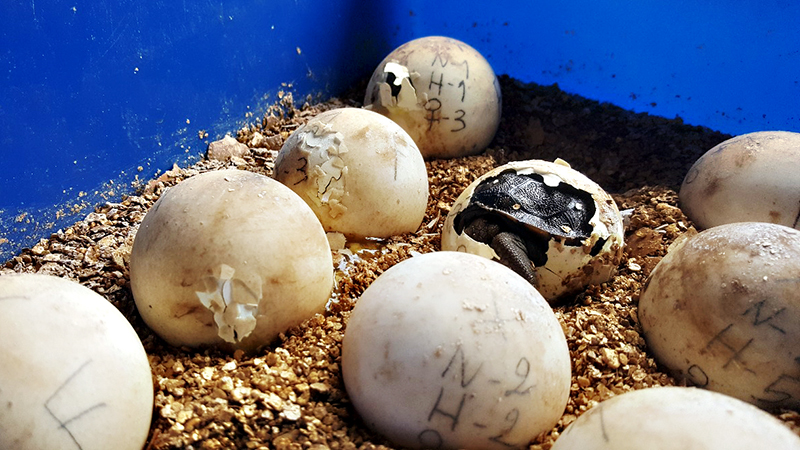 El guardaparque Christian Sevilla, responsable de Conservación y Restauración de Ecosistemas Insulares, informó que la recolección de huevos empezó a mediados de julio. Luego del proceso de pesaje, medición y toma de datos, los huevos fueron colocados en las incubadoras donde permanecieron durante cuatro meses, hasta que las tortuguitas empezaron a salir del cascarón.