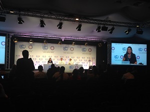 La conferencia de prensa que se llevó a cabo en el Cuartel General del Ejército en Lima, inició con la intervención del Canciller Patiño quien presentó a la jefa de delegación frente a medios de comunicación internacionales. La Ministra señaló que se siguen evadiendo las obligaciones por parte de los países desarrollados, bajo el principio de responsabilidades comunes pero diferenciadas, contemplado bajo la Convención Marco de Naciones Unidas sobre el Cambio Climático.