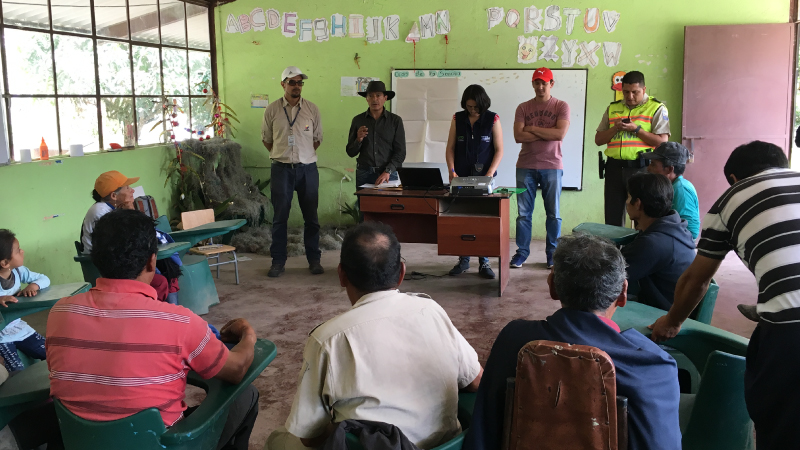 Durante la reunión, que contó con la participación de 15 pobladores del lugar, se logró establecer actividades de corto y mediano plazo, entre ellas: la colocación de cámaras trampa en el sector para monitoreo de fauna silvestre e identificación de causas de la presencia del oso de anteojos, así como determinar la posible afectación a sembríos y ganado.