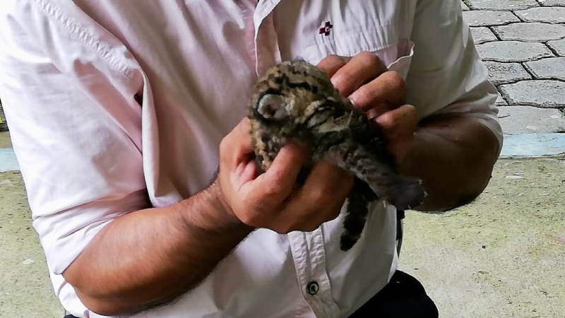 Tigrillo de un mes de edad permanece en zoológico del Coca en proceso de recuperación