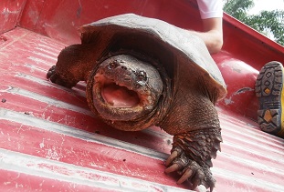 La Dirección Provincial del Ambiente de Cotopaxi, a través de la Oficina Técnica La Maná realizó el rescate de una Tortuga Mordedora (Chelydra acutirostris ), en el sector de Chipe Hamburgo, las Siete Cascadas.